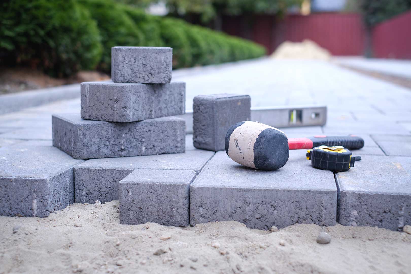 beziehen sich auf das Verlegen von Pflastersteinen oder Platten, um Wege, Einfahrten ,Terrassen oder andere Flächen zu gestalten. Diese Arbeiten umfassen typischerweise das Planen, Vorbereiten des Untergrunds und das präzise Verlegen der Steile oder Platten.
